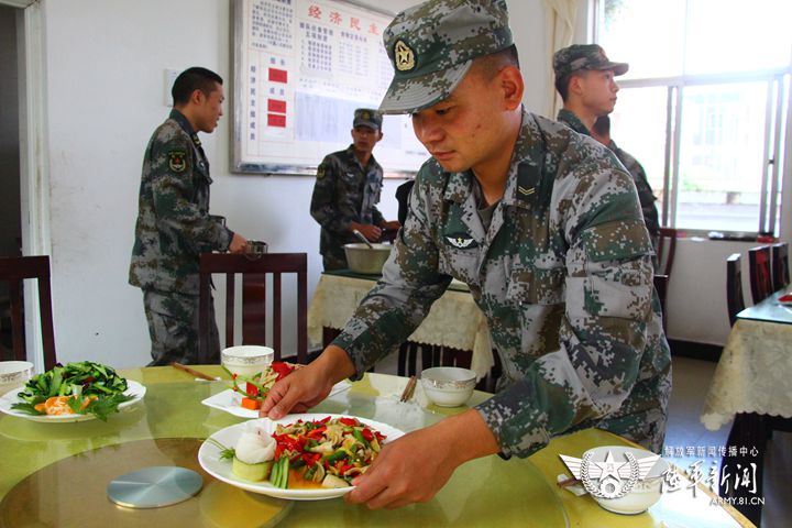 炊事班長裴曉鵬是一名高級廚師,也是此次集訓的教員。培訓期間,他和當?shù)氐拿麖N共同為學員們教授了多種菜品和面點的制作方法,還根據(jù)部隊所需,為駐扎在一線前哨排的炊事員對"菜品保養(yǎng)、凈化飲用山水、高原炊事"等實用方法進行授課,學員們更是全神貫注地投入到學習當中,虛心請教、刻苦學習,漸漸掌握了烹、炒、炸、燉等多種基本技術(shù)。