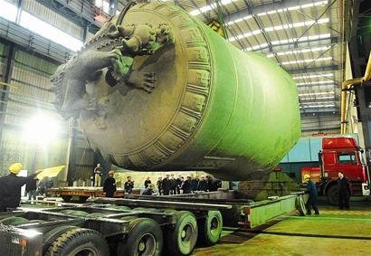 昨日,武漢重工鑄鍛有限公司為廣西柳州西來寺鑄造的世界最大佛鐘裝車啟運。這尊佛鐘高9米、最大直徑6.06米,重達109噸,上面鑄有萬尊佛名,是目前世界上最大的一尊漢產(chǎn)佛鐘。經(jīng)200噸的液壓平板拖車運至位于青山區(qū)的一冶碼頭。二十天之后,這口大鐘最終將被運送到位于柳州的西來古寺。